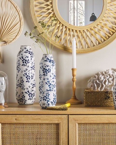 Hohe Keramikvase in Weiß mit blauem Blumenmotiv. Eleganz trifft auf Vintage-Stil: dieser Dekorationsartikel im Used-Look wird zu einer wunderschönen Ergänzung für Ihr Zuhause. Die detailgetreuen, blauen Blumenverzierungen machen die Vase zu einem charmanten Dekorationselement. Dank der hohen Form und der schmalen Öffnung werden Ihre Dekoblumen, Dekozweige oder andere dezente Pflanzen wunderbar zur Geltung kommen. Natürlich sieht diese Blumenvvase auch leerstehend vollkommen stilvoll aus. Details: Typ Blumenvase. Farbe: Weiß. Material: Keramik. Material: Steinzeug. Handgefertigt: Ja. Abmessungen: Tiefe: 10 cm. Breite: 10 cm. Höhe: 30 cm. Gewicht: 1 kg. .Sie kaufen: 1 x Vase. Produktvorteile: Handgefertigt mit viel Liebe zum Detail, Gut kombinierbar mit vielen Einrichtungsstilen, Hochwertiges Material, Besonders pflegeleicht und langlebig, Wasserdicht dank hochwertiger Materialien, Die Unterlage schützt vor Oberflächenkratzern. Montage: Benötigt keine Montage. Zusatzinformationen: Jeder Artikel ist ein handgefertigtes Unikat; Farbschattierung und Muster können daher vom Foto abweichen. Der sichtbare Alterungseffekt, sowie jede Art von Verfärbung oder Abnutzung sind absichtlich und stellen keinen Qualitätsmangel des Produkts dar. Pflegeanleitung: Steinzeug: 1.Bitte ausschließlich milde Reinigungsmittel und weiche Tücher verwenden. Feuchte Stellen sofort trocken reiben.