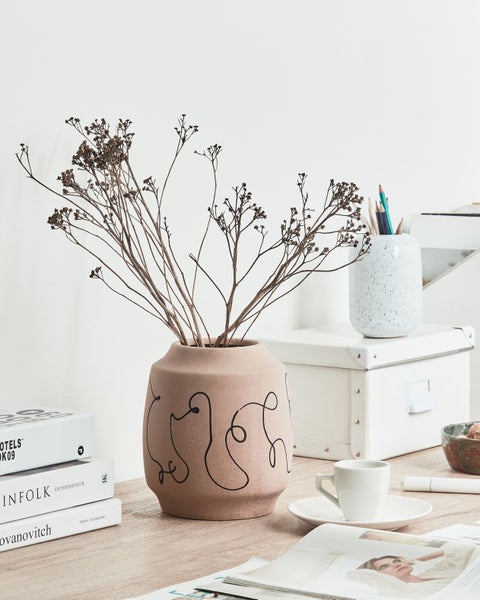 Dekorative Vase mit abstraktem Muster. Mit dieser auffälligen Vase in abstraktem Design bringst du einen Hauch moderner Eleganz in dein Zuhause. Sie ist aus hochwertigem Steingut gefertigt und kombiniert Langlebigkeit mit einem pflegeleichten Aussehen. Dieses vielseitige Stück passt in jeden Raum und ergänzt mühelos eine Vielzahl von Einrichtungsstilen. Details: Typ Blumenvase. Farbe: Beige. Farbton: Sandbeige. Material: Keramik. Material: Steinzeug. Finish: Glasur. Handgefertigt: Nein. Abmessungen: Tiefe: 17 cm. Breite: 17 cm. Höhe: 20 cm. Gewicht: 1.1 kg. .Sie kaufen: 1 x Vase. Produktvorteile: Perfekte Ergänzung für Ihr Heim und für jeden Einrichtungsstil, Ein einzigartiger Hingucker, Wasserdicht dank hochwertiger Materialien, Besonders pflegeleicht und langlebig, Die Unterlage schützt vor Oberflächenkratzern. Montage: Benötigt keine Montage. Pflegeanleitung: Steinzeug: 1.Bitte ausschließlich milde Reinigungsmittel und weiche Tücher verwenden. Feuchte Stellen sofort trocken reiben.