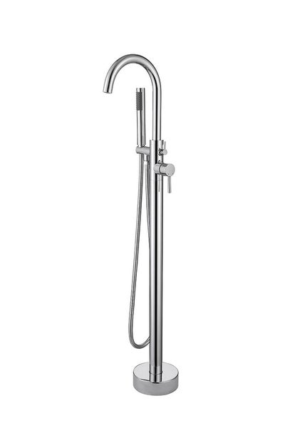 Die freistehende Badewanne ist ein elegantes Designelement, das die passende Armatur erfordert. KV Store bietet die ideale Lösung, der freistehende Badewannenmischer, geeignet für die Bodenmontage neben freistehenden Badewannen. Er überzeugt durch innovatives Design, hochwertige Materialien, einen Messingkörper, eine Edelstahl-Säule, einen 35 mm-Kartuschenmechanismus sowie einen integrierten Durchflussregler für präzise Wassersteuerung. Umstellventil und Duschset aus Zink sind im Lieferumfang enthalten. Mit einer Höhe von 117 cm und einem Basisdurchmesser von 15 cm verleiht dieser Badewannenmischer jedem Badezimmer Charakter, Eleganz und Funktionalität – alles zu einem attraktiven Preis.