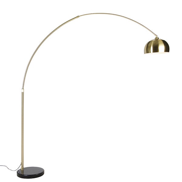 Bogenleuchte Messing mit schwarzem Marmorsockel und Messingschirm - XXL