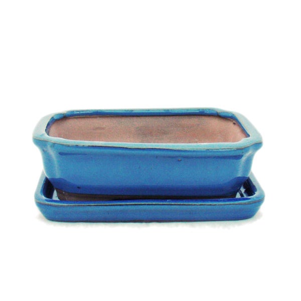 Bonsai-Schale mit Unterteller Gr. 2 - Blau - eckig - Modell G12 - L 15,5cm - B 11,5cm - H 4,5cm