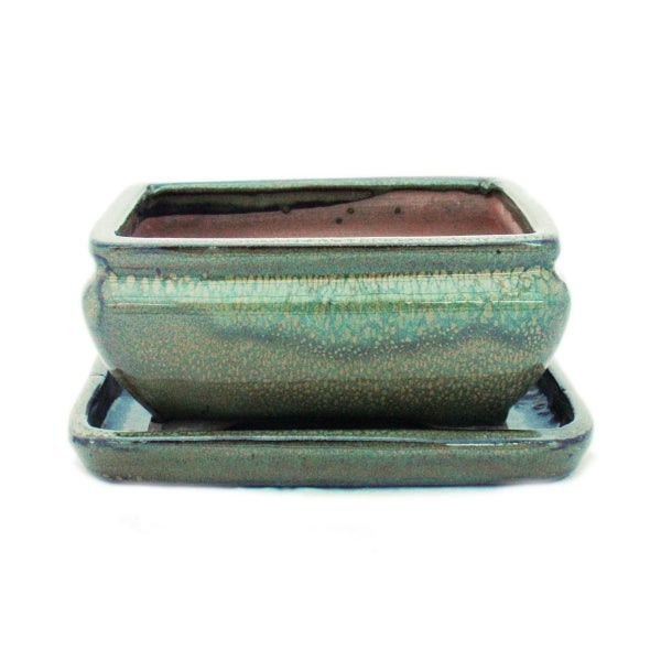 Bonsai-Schale mit Unterteller Gr. 2 - Grün - eckig - Modell G81 - L 14,5cm - B 11,3cm - H 6,6cm