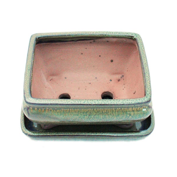 Bonsai-Schale mit Unterteller Gr. 2 Oliv-Braun eckig Modell G81 L 14,5cm B 11,3cm H 6,6cm