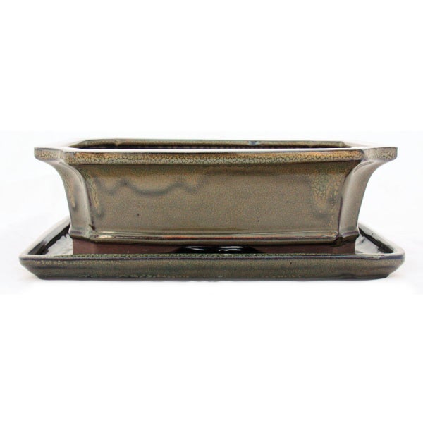 Bonsai-Schale mit Unterteller Gr. 4 - Oliv-Braun - eckig - Modell G4 - L 26cm - B 20cm - H 8cm