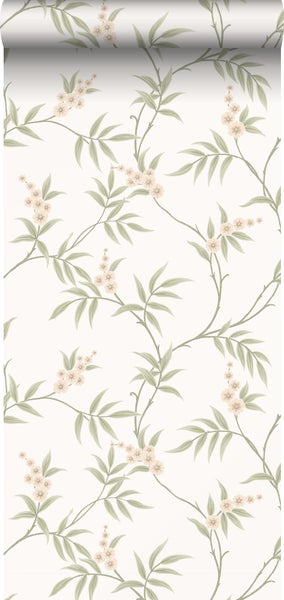Diese trendige und stimmungsvolle Tapete mit Blätter und Blumen in Grün und Weiß ist ein absolutes Must-Have! Sie verleiht jedem Wohnraum einen frischen Look und schafft eine warme, stimmungsvolle Atmosphäre.