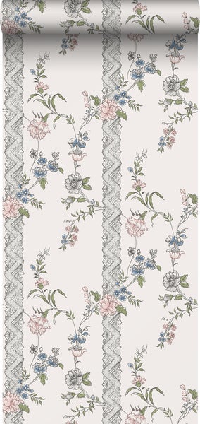Diese stilvolle Tapete mit Blumen in Beige und Mehrfarbig verleiht jedem Wohnraum einen romantischen, vintage Touch. Die Tapete hat eine schöne matte Oberfläche und sorgt für eine warme und stimmungsvolle Atmosphäre.