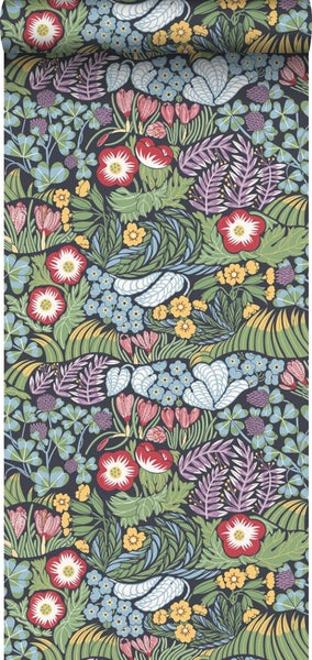 Diese schöne Tapete mit Blumen im Matisse-Stil in Graublau verleiht jedem Wohnraum einen botanischen Look. Typisch für den botanischen Stil sind satte Grüntöne, helle und frische Farben, natürliche Materialen und vor allem richtig viel Pflanzen.
