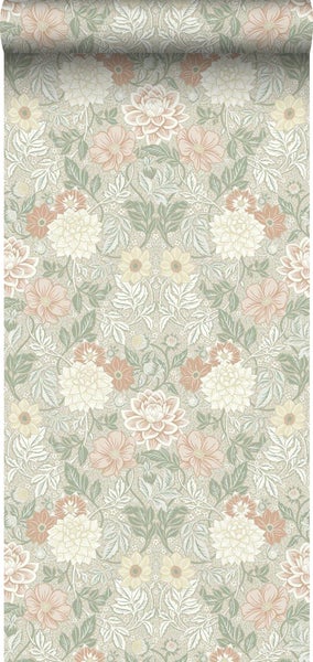 Diese schöne Tapete mit Blumenmuster im Jugendstil in Hellgrün und Rosa verleiht jedem Wohnraum einen warmen Vintage-Look. Sie versprüht einen Hauch Nostalgie und lässt an vergangene Zeiten erinnern. Stilvolle Vintage Accessoires und Möbel passen perfekt zu dieser Tapete und runden den Look ab.