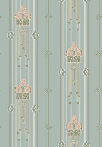 Borastapeter Tapete Blumenmuster im Jugendstil Türkis - 53 cm x 10.05 m - 660010