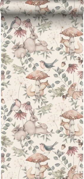 Borastapeter Tapete vintage Waldtiere Beige - 53 cm x 10.05 m - 660636