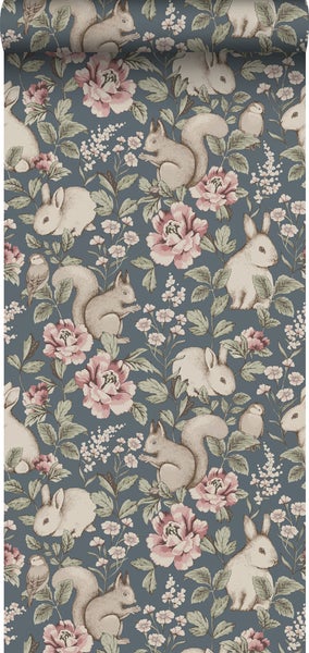Diese schöne Tapete mit vintage Waldtieren in Graublau verleiht jedem Wohnraum einen warmen Vintage-Look. Sie versprüht einen Hauch Nostalgie und lässt an vergangene Zeiten erinnern. Stilvolle Vintage Accessoires und Möbel passen perfekt zu dieser Tapete und runden den Look ab.