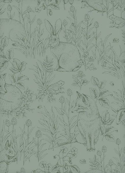Borastapeter Tapete vintage Waldtiere Grün - 53 cm x 10.05 m - 660632