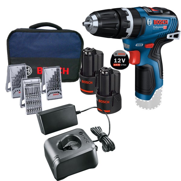 Bosch Akku-Schlagbohrmaschine GSB 12V-35 / 2x 3,0 Ah Akku + Ladegerät inkl. Zubehör-Set im Softbag