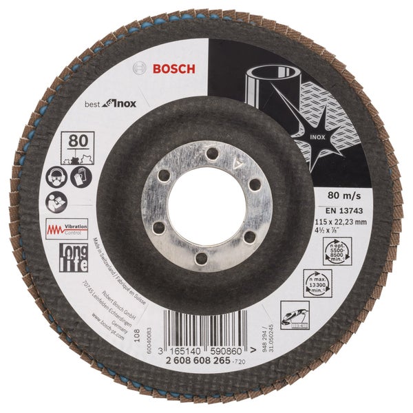 Bosch Fächerschleifscheibe Best for Inox 115 22,23 80 gewinkelt Glasgewebeteller - 2608608265