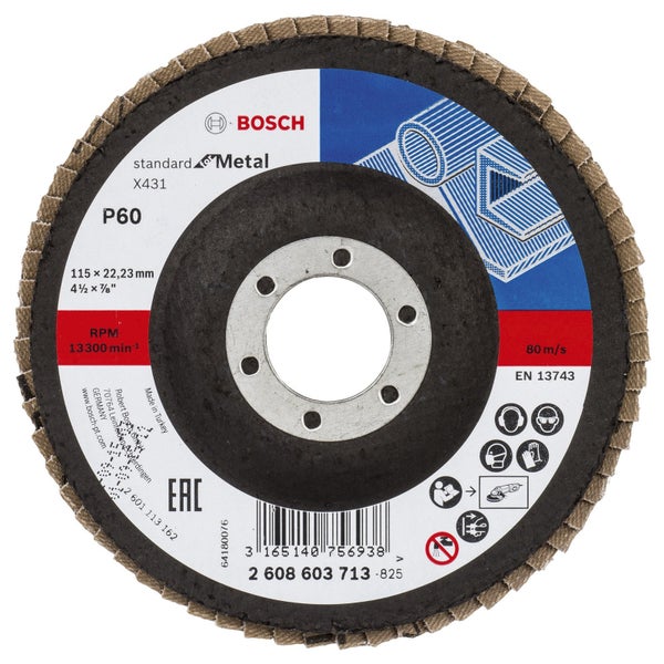 Bosch Fächerschleifscheibe X431 Standard for Metal gerade 115 mm 60 Glasgewebe - 2608603713
