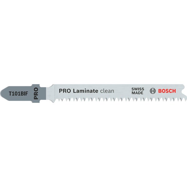 Herausragende Lebensdauer in Laminat! Bi-Metall Blatt: Kombiniert harte Zähne mit flexiblem Blattkörper Beim Schneiden von Laminat mit einer Stichsäge sind grobe Schnitte und Grate an den Kanten ein großes Ärgernis. Das PRO Laminate clean T101BIF ist die Lösung. Damit erzielst du gerade, saubere Schnitte in Hartholz und Laminat mit einer Dicke von bis zu 15 mm. Das PRO Laminate clean T101BIF Stichsägeblatt aus BI-Metall (BIM) verfügt über eine Zahnleiste aus Schnellarbeitsstahl (HSS), die mit einem Körper aus Kohlenstoffstahl (HCS) verbunden ist. Dadurch bekommst du die Festigkeit, die du für die mühelose Bearbeitung von Hartholz und Laminat benötigst. Die geschliffenen spitzen Zähne und die konische Form des Blatts sorgen dafür, dass die Oberflächenschicht des Laminats nicht hängen bleibt oder bricht. So kannst du einen guten Schnitt erzielen – immer und immer wieder.