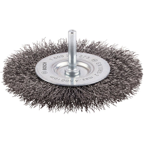 Die Scheibenbürste bietet eine gutes Feinfinish. Sie ist mit gewelltem Draht für leichte bis mittelschwere Reinigungsarbeiten an kleinen Flächen ausgestattet und ideal zum Entfernen von Anlauffarben geeignet. Die Scheibenbürste ist für Reinigungsarbeiten mit hoher Drehzahl von kleineren Stahloberflächen sowie Kanten und Fugen geeignet. Darüber hinaus ist sie ideal zum Entfernen von Rost, zum Schruppen, Mattschleifen und Entfernen von Farbe geeignet. Drahtbüsten werden in verschiedenen Stärken für verschiedene Schleifgrade angeboten. Stärkerer Draht arbeitet intensiver und schafft schnell Oberflächen, die allerdings grob sind. Dünnerer Draht sorgt für feinere und glattere Oberflächen. Sie ist bestimmt für Bohrmaschinen mit Schaft 6 mm.
