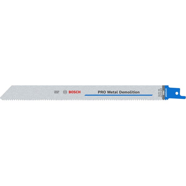 Lange Lebensdauer bei der Bearbeitung von Metall! Bi-Metall Blatt: Kombiniert harte Zähne mit flexiblem Blattkörper Säbelsägen sind ausgezeichnete Werkzeuge für solche Aufgaben. Das PRO Metal Demolition S1125VF Säbelsägeblatt unterstützt dich bei der Bewältigung selbst anspruchsvollster Abbrucharbeiten. Die BI-Metall-Konstruktion aus einem stabilen HCS-Körper mit gehärteten HSS-Zähnen machen das PRO Metal Demolition S1125VF Säbelsägeblatt sehr robust. Die fortschrittliche Bosch Vario-Zahnform sorgt für einen effizienteren Schneidvorgang, für glatte Schnitte und Langlebigkeit.