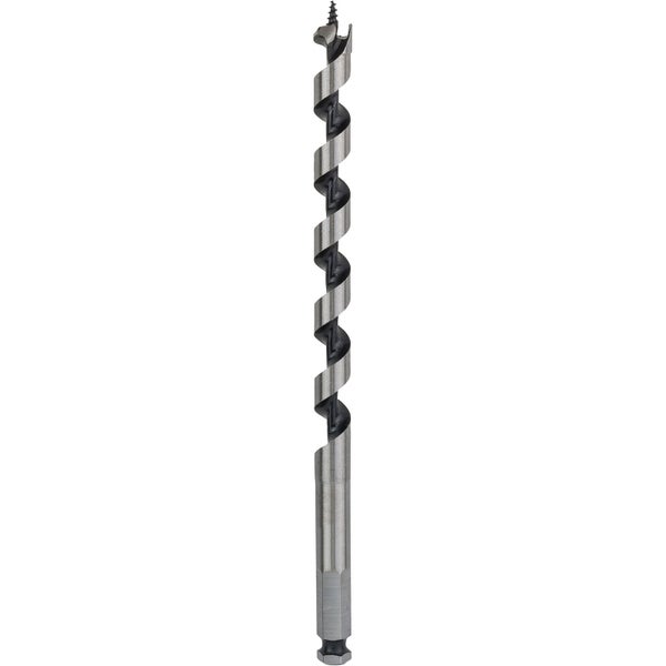 Optimierter Vorschneider und die präzisionsgeschliffene Hauptschneidekante sorgen für exakte Bohrlöcher Der Bohrer besitzt ein Sechskant-Schaftsystem und ist für alle Bohrschrauber mit 13-mm-Bohrfutter geeignet. Der Holzschlangenbohrer ist ideal für schnelle Präzisionsbohrungen für Durchgangslöcher, Vorbohrungen für Sparrennägel und das Bohren tiefer Dübellöcher in Holz. Die Hochleistungsspitze mit automatischem Vorschub zieht den Bohrer vollständig durch, womit schnellere und mühelosere Präzisionsbohrungen möglich sind. Gerade Löcher, ein schneller Späneabtransport und eine höhere Geschwindigkeit sind durch die auf geringe Reibung hin optimierte Nutgeometrie des Bohrers mit festem Zentrum möglich. Sein Vorritzer und die präzisionsgeschliffene Hauptschneidekante sorgen für exakte Bohrlöcher. Er ist ideal geeignet für Zusatzverschalungen, für Schreiner und Dachdecker, in Weich- und Hartholz
