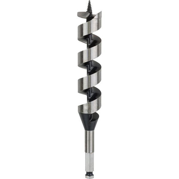 Optimierter Vorschneider und die präzisionsgeschliffene Hauptschneidekante sorgen für exakte Bohrlöcher Der Bohrer besitzt ein Sechskant-Schaftsystem und ist für alle Bohrschrauber mit 13-mm-Bohrfutter geeignet. Der Holzschlangenbohrer ist ideal für schnelle Präzisionsbohrungen für Durchgangslöcher, Vorbohrungen für Sparrennägel und das Bohren tiefer Dübellöcher in Holz. Die Hochleistungsspitze mit automatischem Vorschub zieht den Bohrer vollständig durch, womit schnellere und mühelosere Präzisionsbohrungen möglich sind. Gerade Löcher, ein schneller Späneabtransport und eine höhere Geschwindigkeit sind durch die auf geringe Reibung hin optimierte Nutgeometrie des Bohrers mit festem Zentrum möglich. Sein Vorritzer und die präzisionsgeschliffene Hauptschneidekante sorgen für exakte Bohrlöcher. Er ist ideal geeignet für Zusatzverschalungen, für Schreiner und Dachdecker, in Weich- und Hartholz