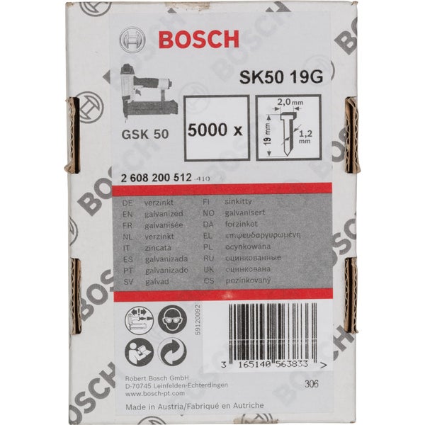Bosch Senkkopf-Stift SK50 19G, 1,2 mm, 19 mm, verzinkt - 2608200512