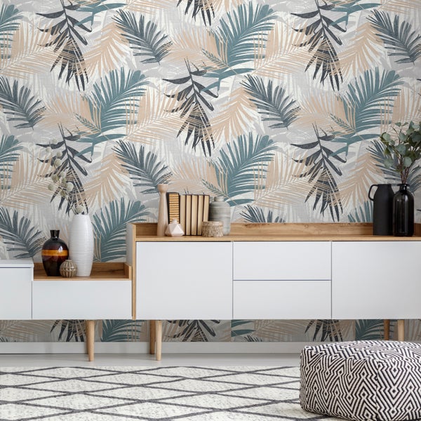 Boutique – Vliestapete – Jungle Glam – Blau/Grün – 10 m x 52 cm