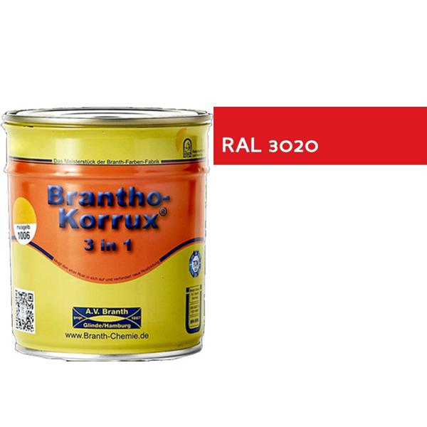 Brantho Korrux 3in1 Rostschutzfarbe - Primer, Rostschutz und Lack RAL 3020 - verkehrsrot / 750ml