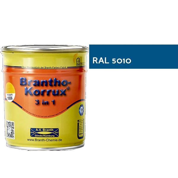 Brantho Korrux 3in1 Rostschutzfarbe - Primer, Rostschutz und Lack RAL 5010 - enzianblau / 5Lt. / 6 Kg.