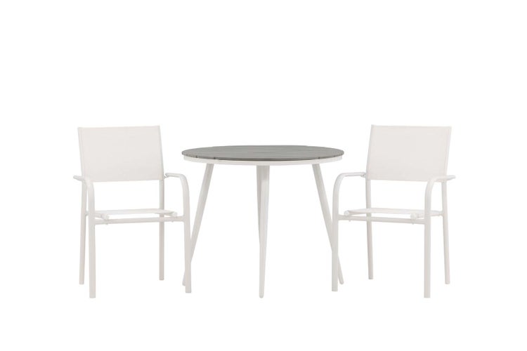 Break Gartenset Tisch Ø90cm grau, 2 Stühle Santorini weiß. 90 X 90 X 74 cm