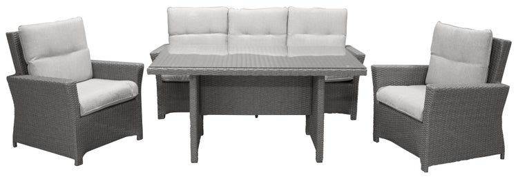Das 4-teilige Gartenset von Brentwood in Grau ist ein Gartenset in der Farbe Grau, das sowohl Stil als auch Funktionalität in Ihr Zuhause bringt. Brentwood Gartenset 4-teilig grau. Esstisch H x T x B cm: 72 x 145 x 85. Sofa H x T x B cm: 89 x 73 x 186. Sitzbreite cm: 165. Sitzhöhe cm: 43. Sitztiefe cm: 42. 2 Stühle. Rückenlehne verstellbar: Nein. H x T x B cm: 89 x 73 x 75. Dieses Produkt wurde mit Liebe zum Detail hergestellt, was sowohl Ästhetik als auch hohe Haltbarkeit gewährleistet. Bei der Gestaltung wurde sowohl auf Funktionalität als auch auf Stil geachtet, was es zur perfekten Wahl für jeden Raum in Ihrem Zuhause macht. Die verwendeten Materialien sind von hoher Qualität, was dem Produkt eine lange Lebensdauer verleiht und dafür sorgt, dass es dem täglichen Gebrauch standhält. Ob zur Aufbewahrung oder als dekorative Ergänzung, dieses Produkt wertet Ihre Einrichtung auf und bringt zusätzlichen Komfort und Eleganz in Ihr Zuhause.