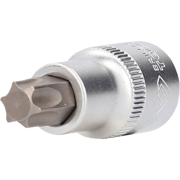 nach DIN 3120 gefertigt 1/2“ Innenvierkant-Antrieb (12,5 mm) aus qualitativem Chrom-Vanadium-Stahl für besonders hohe Langlebigkeit matt verchromt Torx-Profil T55 Die BRILLIANT TOOLS Torx-Bit-Stecknuss BT022977 hat einen 1/2 (12,5 mm) Innenvierkant-Antrieb, der nach DIN 3120 gefertigt ist. Der eingepresste phosphatierte Bit hat die Größe T55. Die Bit-Stecknuss hat eine Gesamtlänge von 55 mm, die Klingenlänge beträgt 17 mm. Die Oberfläche ist an der Antriebsseite und an der Bitseite matt verchromt, diese ist durch eine Längsrändelung getrennt. UNSERE QUALITÄT: BRILLIANT UNSERE PREISE: SMART In jedem Werkzeug steckt mehr als ein viertel Jahrhundert Erfahrungen unserer Experten. Diese kompromisslose Qualität, Profi-Werkzeuge mit höchster Qualität für den harten Arbeitsalltag, ist eines der Erfolgsrezepte für uns. Wir verzichten auf eine große Vertriebsstruktur und extravagante Marketing-Aktivitäten und können Dir die Produkte daher zu einem sensationell günstigen Preis-/Leistungsverhältnis anbieten. Spare bares Geld ohne Deine Qualitätsansprüche herunterzuschrauben! Ein Qualitätswerkzeug powered by KS TOOLS.