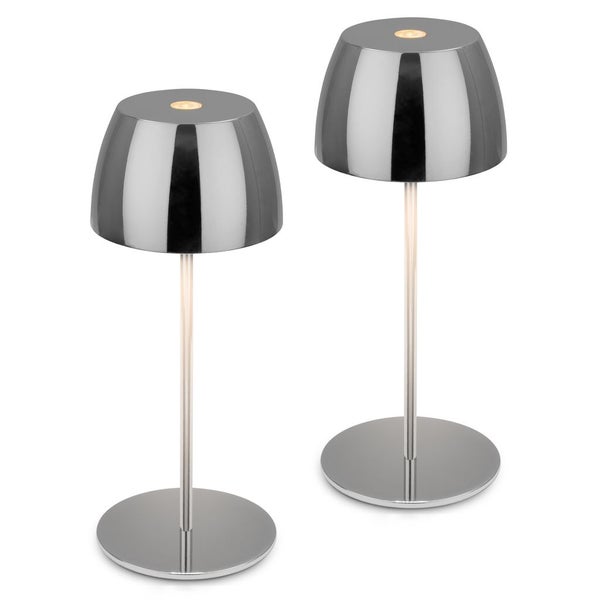 Briloner Serina Mini LED Tischlampe kabellos IP44, Dimmbar, Touch, Spritzwasserschutz, akku, chrom, Ø8 x 20 cm
