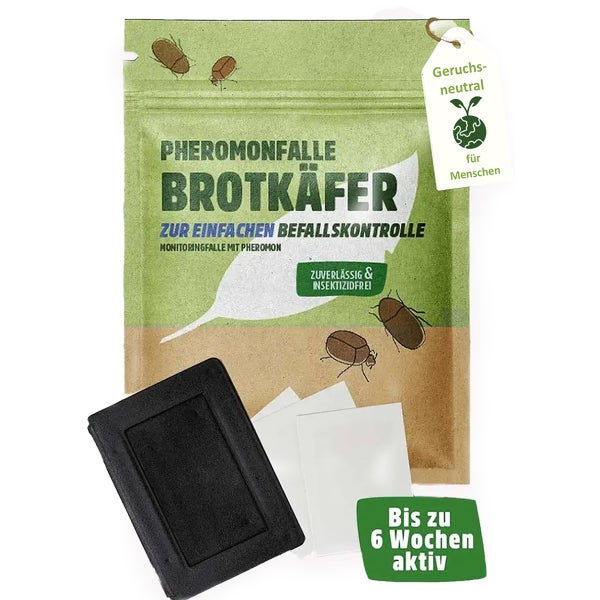 Die Brotkäferfalle ist insektizidfrei, für den Menschen geruchsneutrale und für Tier und Mensch absolut ungefährlich.