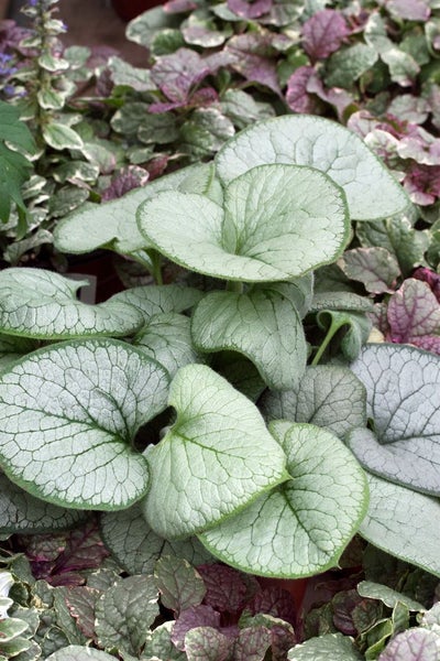 Brunnera macrophylla 'Looking Glass', Kaukasusvergissmeinnicht, ca. 11x11 cm Topf