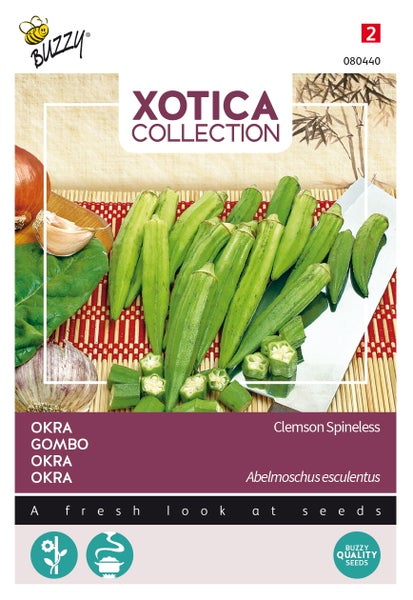 Entdecken Sie die Buzzy Xotica Samen Okra Clemson Spineless Samen in unserem Webshop. Perfekt für Ihren Garten. Bestellen Sie jetzt und starten Sie Ihr eigenes Okra-Abenteuer!