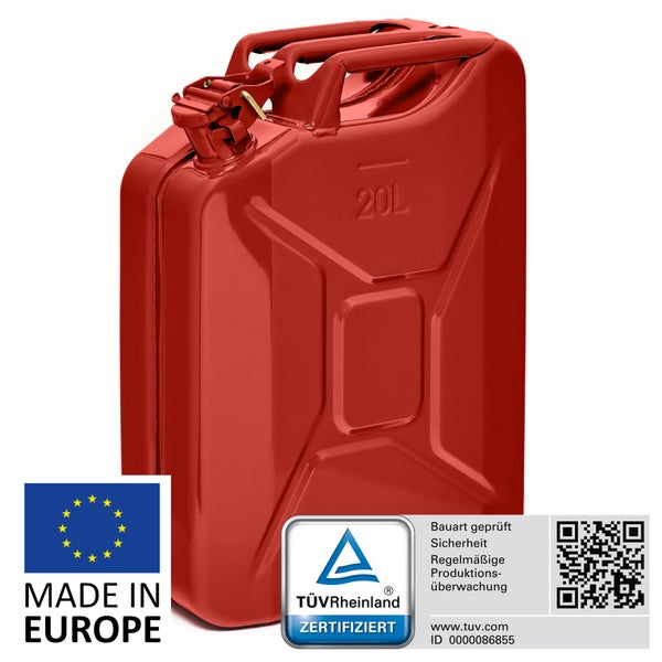 BW® Kraftstoffkanister Metall Benzinkanister 20 Liter - Rot RAL 3000 - UN-Zulassung - Hergestellt in Europa