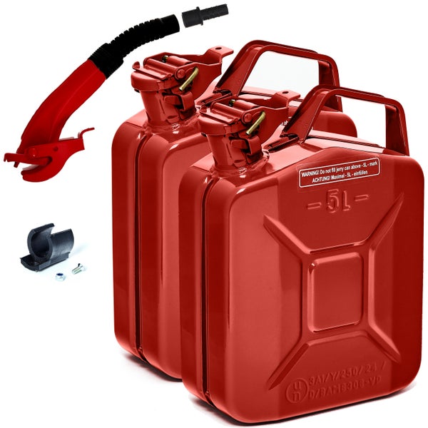 BW® Kraftstoffkanister Metall Benzinkanister 2x 5 Liter mit Ausgießer - Rot RAL 3000 - UN-Zulassung - Hergestellt in Europa