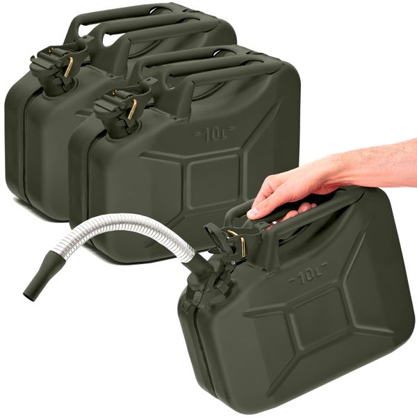 BW® Kraftstoffkanister Metall Benzinkanister 3x 10 Liter mit Ausgießer - Bronzegrün RAL 6031-F9 - UN-Zulassung - Hergestellt in Europa