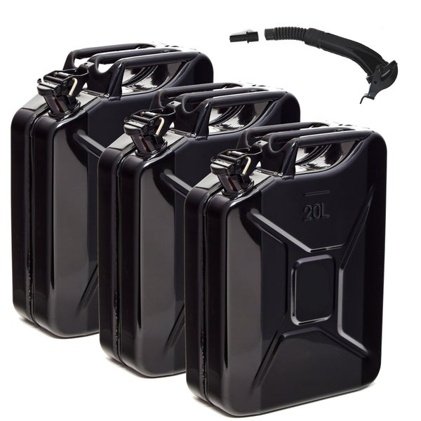 BW® Kraftstoffkanister Metall Benzinkanister 3x 20 Liter mit Ausgießer - Schwarz - RAL 9005 - TÜV-geprüft und UN-Zulassung - Made in Europe