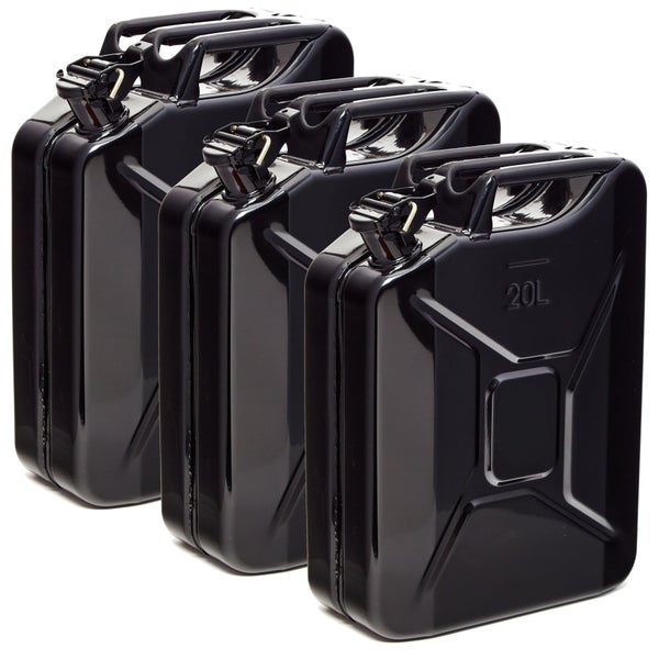 BW® Kraftstoffkanister Metall Benzinkanister 3x 20 Liter - Schwarz - RAL 9005 - TÜV-geprüft und UN-Zulassung - Made in Europe