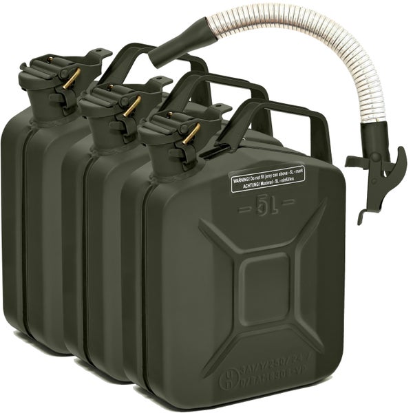 BW® Kraftstoffkanister Metall Benzinkanister 3x 5 Liter mit Ausgießer - Bronzegrün RAL 6031-F9 - UN-Zulassung - Hergestellt in Europa