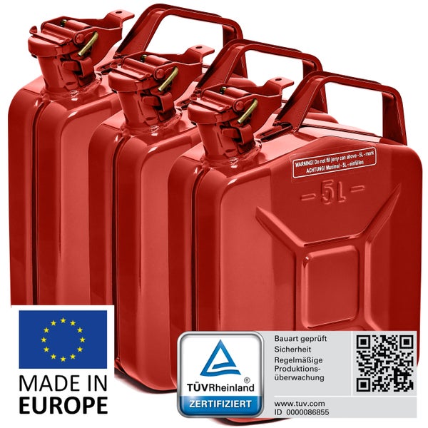 BW® Kraftstoffkanister Metall Benzinkanister 3x 5 Liter - Rot RAL 3000 - UN-Zulassung - Hergestellt in Europa