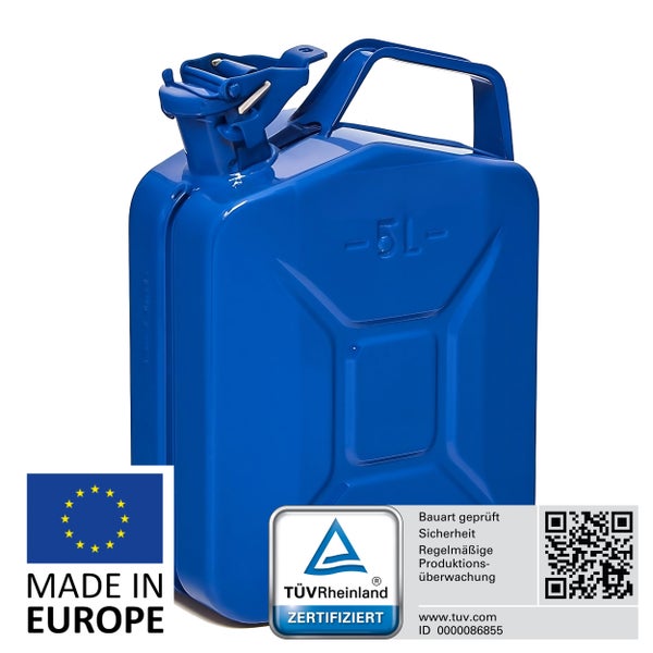 BW® Kraftstoffkanister Metall Benzinkanister 5 Liter - Blau RAL - UN-Zulassung - Hergestellt in Europa