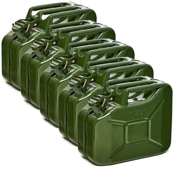 BW® Kraftstoffkanister Metall Benzinkanister 5x 10 Liter - Olivgrün - RAL 6003 - TÜV-geprüft und UN-Zulassung - Made in Europe
