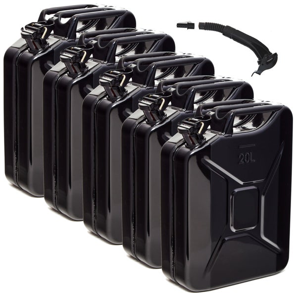BW® Kraftstoffkanister Metall Benzinkanister 5x 20 Liter mit Ausgießer - Schwarz - RAL 9005 - TÜV-geprüft und UN-Zulassung - Made in Europe