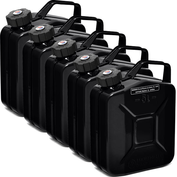 BW® Kraftstoffkanister Metall Benzinkanister 5x 5 Liter mit Schraubverschluss - Schwarz - RAL 9005 - TÜV-geprüft und UN-Zulassung - Made in Europe