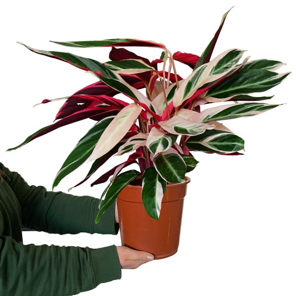 Der Name spricht hier Bände. Die rosa-weiß-grüne Blattmaserung machte jede Calathea Stronanthe Triostar unverwechselbar. Wie ein Kunstwerk dekoriert sie dein Wohnzimmer und bringt Farbe und frische Luft ins Spiel. Die bereits 70cm große ungiftige Pflanze ist unter den Calathea eine recht pflegeleichte und wird dir und deiner Katze lange Freude bereiten.