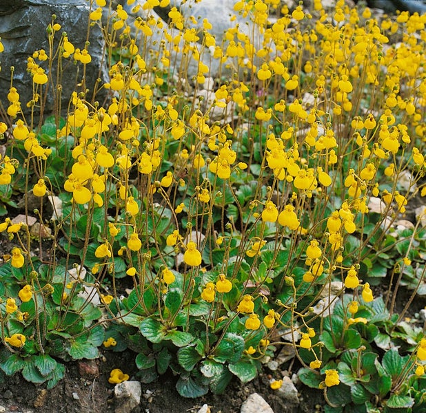 Am liebsten wächst die Gartenstaude an einem sonnigen bis halbschattigen, geschützten Standort mit gleichmäßig frischem, gut durchlässigem, humos-sandigem und eher kalkarmem Boden. Staunässe sollte vermieden werden, während eine konstante, maßvolle Wasserversorgung die Blühfreude fördert. Dezente Düngergaben im Frühjahr und ein Rückschnitt verwelkter Blüten verlängern die Blütezeit und unterstützen einen kompakten Aufbau. In Regionen mit strengen Wintern empfiehlt sich ein leichter Winterschutz, etwa durch Laubmulch, da die Art zwar robust, aber auf dauerhaft nasse, kalte Böden empfindlich reagieren kann. Mit ihrer eleganten, dennoch natürlichen Ausstrahlung bereichert Calceolaria biflora Beete, Steingärten, Tröge und Pflanzgefäße und bietet eine vielseitige Option für Liebhaber strukturierter, farbintensiver Gartenbilder.