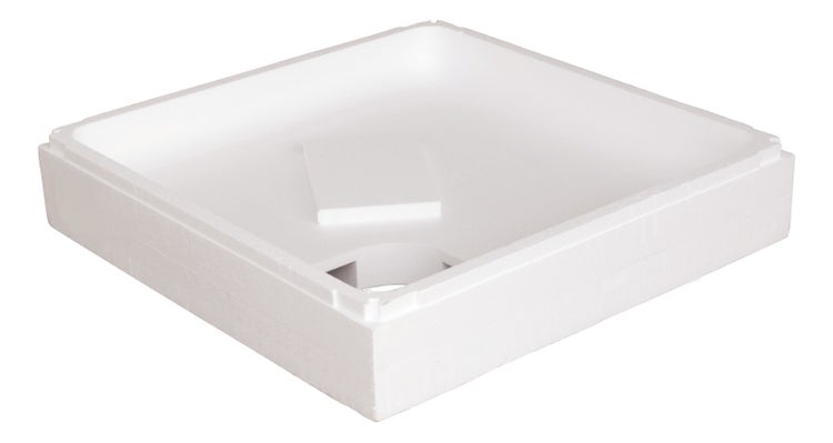 Setzen Sie beim Einbau der Duschwanne auf eine schnelle und kostengünstige Montage! Der Duschwannenträger Modern Soft von Calmwaters trägt die Duschtasse sicher, zudem lässt er sich direkt verfliesen. So sparen Sie sich einiges an Arbeit! Der Träger besteht aus Styropor, dieser Werkstoff ermöglicht eine zusätzliche Wärme- und Schallisolierung. So efreuen Sie sich beim Duschen über einen angenehmen Stand auf der Brausewanne, zudem fallen die Wassergeräusche gering aus. Aufgrund der Maße und der quadratischen Form eignet er sich für eine 6,5 cm hohe Quadrat-Brausetasse. Die Verwendung mit der Viertelkreis-Duschwanne Amrum von Calmwaters (01SL2962) wird empfohlen.