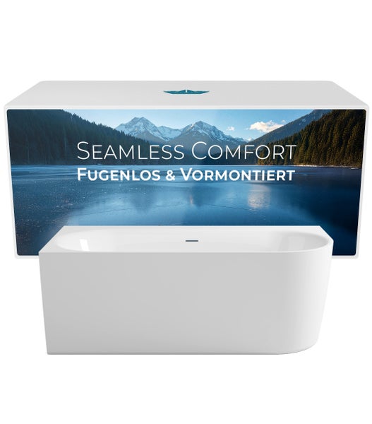 Calmwaters Vorwand-Badewanne 160x75 cm Komplettset Seamless Comfort, fugenloses Design vormontiert mit Schürze & Ablaufgarnitur, rechte Ausführung, Made in EU, Acryl, 02SL6223